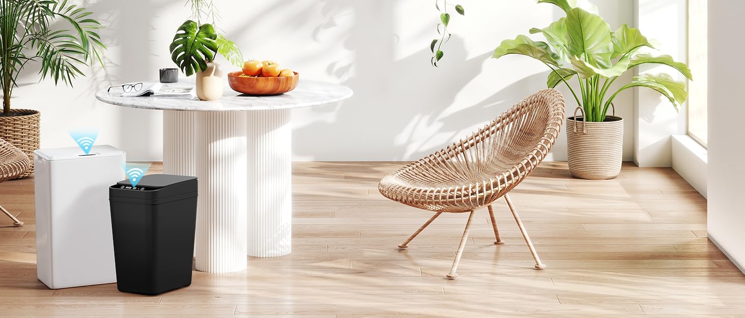 【Waterproof and durable】Crafted from high-quality ABS materials and equipped with IPX5 waterproof technology, this 2.6-gallon automatic trash can is resistant to water and humidity, guaranteeing trash can for bathroom long-lasting and clean use.