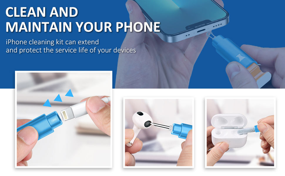 SAFE FOR YOUR DEVICES – This cleaning kit for iPhone charging port keeps your own devices and accessories clean and flawlessly connected from the inside out. This cleaning kit is safe for your iPhone, iPad, and Airpod, and will not damage your device, and our phone cleaning kit includes a special small handle, which is more convenient to use, reduces operating errors, and keeps your device ensure safety