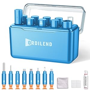 Customers find the cleaning kit effective at removing dirt from phone openings and appreciate its ease of use and performance in fixing charging issues. The product is worth its price, though opinions on durability are mixed, with some saying it’s well-made while others report it breaks easily. The versatility receives mixed feedback, with some praising the variety of tools while others find them relatively useless. Several customers note compatibility issues, particularly with USB-C ports.