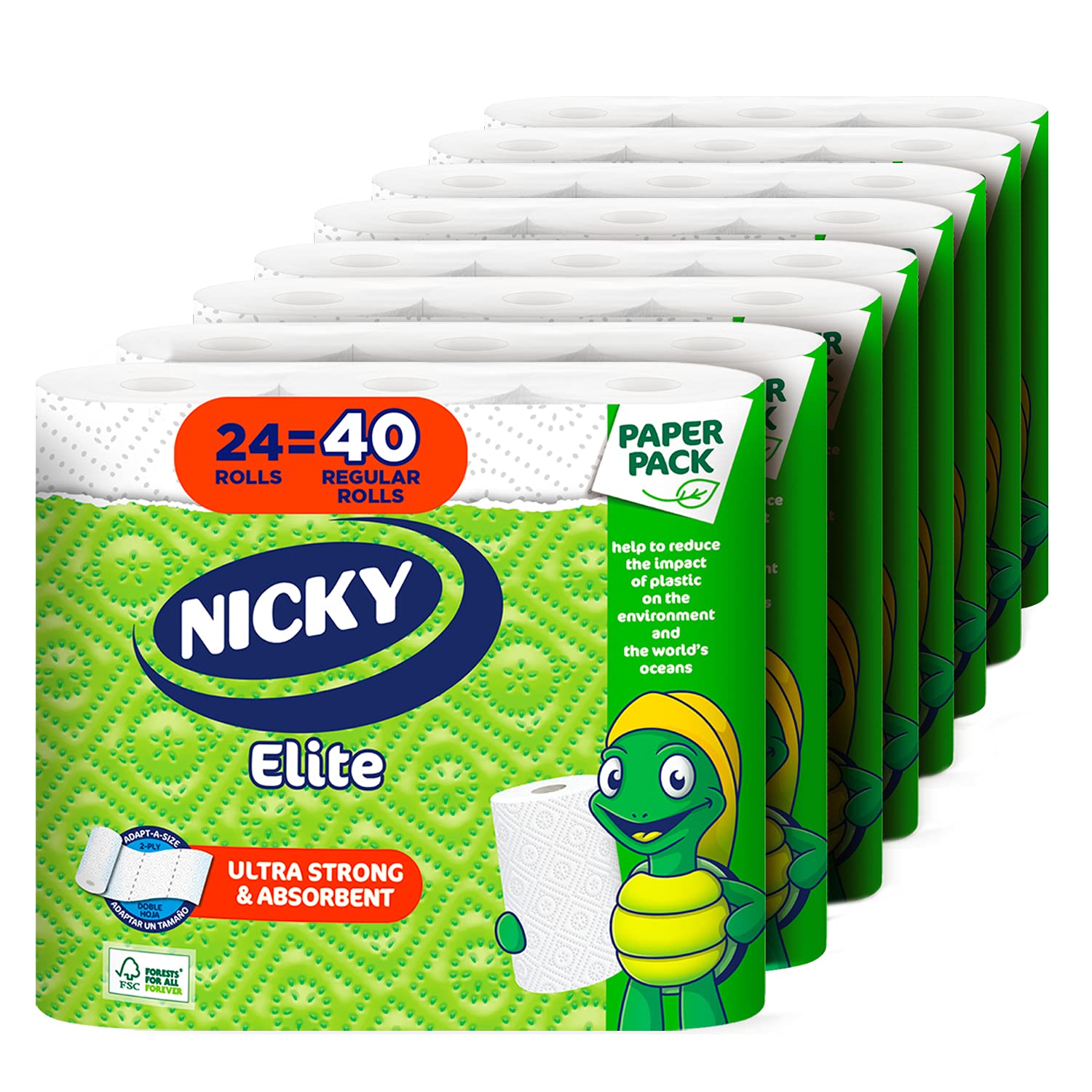 • Elite Adapt-A-Size Paper Towels 24 Large Rolls= 40 Regular Rolls Plastic Free Packaging Paper Wrap Ultra Strong and Absorbent