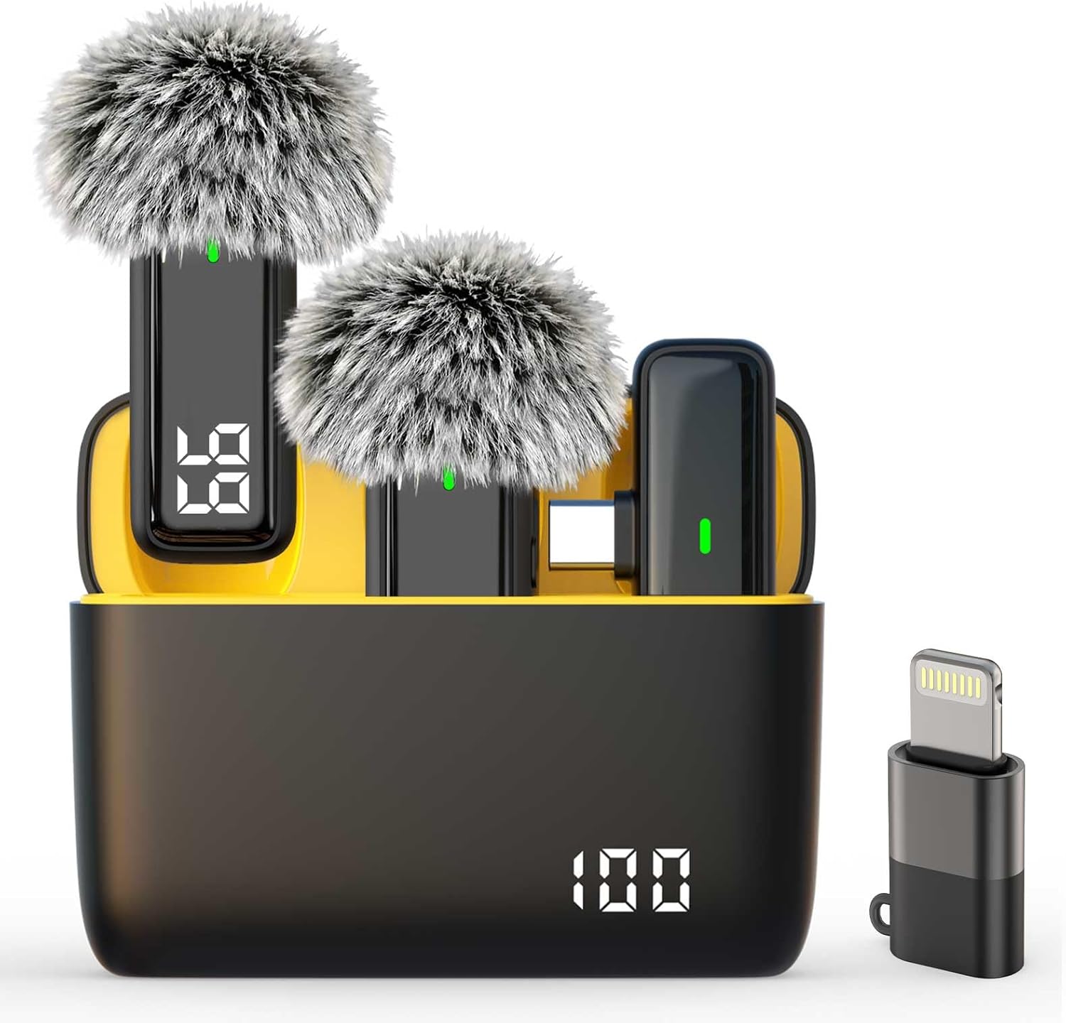 • Wireless Lavalier Microphone for Android/iPhone/Computer/Laptop, Wireless Mic for iPhone15 with Noise Reduction Chip, Mini Microphone for Recording Podcast YouTube, TikTok(2 Pack)