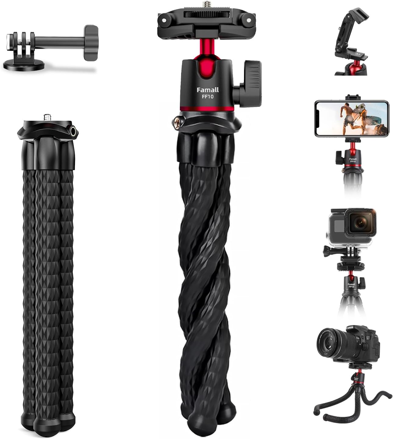 Wide Compatibility: The universal phone holder is compatible with all cellphone between 2.8″ to 5.7″. With a universal 1/4″ screw mount is applicable for most digital cameras, action camera, webcam and camcorder