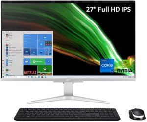 • Acer Aspire C27-1655-UA93 AIO Desktop | 27″ Full HD IPS Display | 11th Gen Intel Core i7-1165G7 | NVIDIA GeForce MX330 | 16GB DDR4 | 512GB SSD | 1TB HDD | Intel Wireless Wi-Fi 6 | Windows 10 Pro