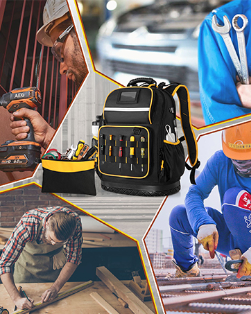 MULTIPLE POCKETS: The main compartment and front section with multiple pockets, slots and elastic bands to secure various handheld tools, power tools and bulky tools. Comes with a separate tool pouch to hold some small tools.